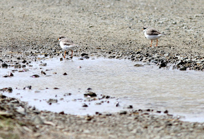 It was a matter of ' od onto thi cap' at Fly Flatts with the wind so strong it was hard to open the car door. Waves were lashing over the banking but the 4 Ringed Plovers present never flinched as they fed along the waters edge with spray splashing over them. These long staying 2 pairs of birds are looking like they want to breed but there is just no suitable banking that is undisturbed.