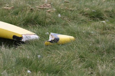 Fly Flatts takes no prisoners, the remains of a wind surfing board this afternoon.Full speed ahead.