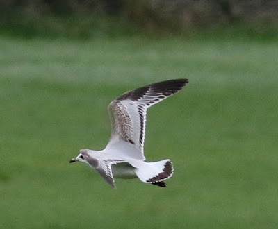 Mid afternoon and back to Fly Flatts to check the water and see if I could re locate yesterdays probable Rock Pipit but on arrival, with a near gale force W>6 blowing, the hardy windsurfers were out in force on the water so I set out to check the conduit. That was until I got a text from MP who had just located yet another Med gull in the Thornton fields.