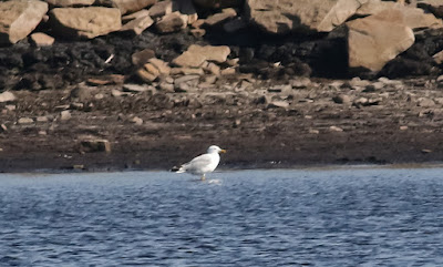 With the scope set up near the end of the west bank I started to scan the shoreline and waters edge where 12 LBB gulls were on the mud and shallow water along with 2 juv Herring and an adult Yellow Legged Herring gull.